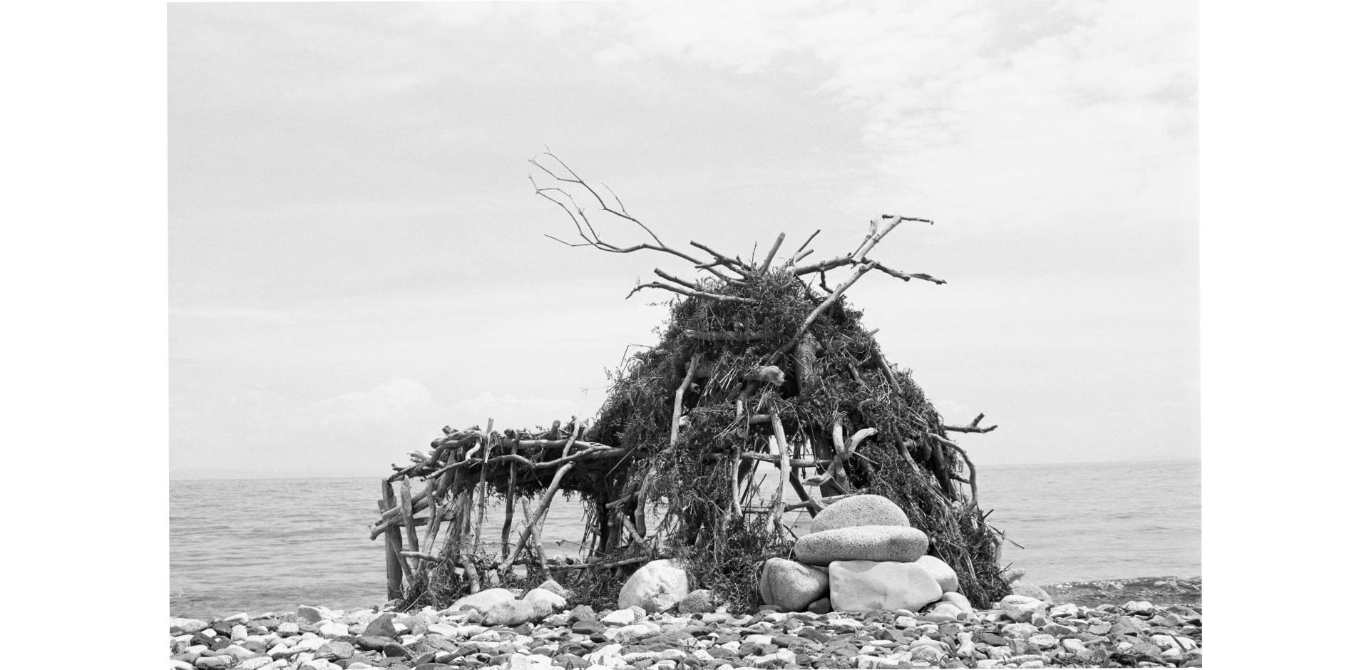 Cykl fotografii Architektura przetrwania poświęcony jest efemerycznej architekturze, którą artysta – fotograf, antropolog i pisarz – odkrył na greckiej wyspie Samotraka. Szałasy z kamieni, patyków i derek zostały zbudowane przez mieszkańców miast, którzy przyjeżdżają tutaj, by odpocząć od cywilizacji, spróbować innego życia. Jak mówi artysta: „Ta ograniczająca ruchy do podstawowych gestów przetrwania przestrzeń to również dobry punkt obserwacyjny, z którego wyraźnie widoczna staje się tektonika współczesnych kryzysów, ekonomicznego, uchodźczego, ekologicznego”. Samotraka była w starożytności świętą wyspą, w XX wieku po greckiej wojnie domowej, stała się miejscem zsyłki wrogów politycznych. Dzisiaj jest granicą Europy, jej przyczółkiem na Morzu Egejskim i świadkiem tragedii uchodźców. Zdjęcia z kolekcji Galerii Studio są częścią cyklu, który liczy kilkadziesiąt czarno-białych fotogramów. Część z nich była pokazana na wystawie Transfert w 2019 roku, cztery znajdują się w naszej kolekcji.